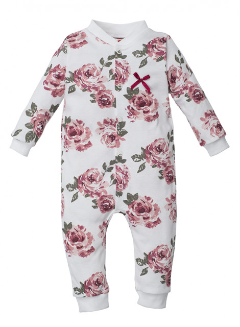 Salopeta din bumbac, alba cu trandafirasi, fara botosei.