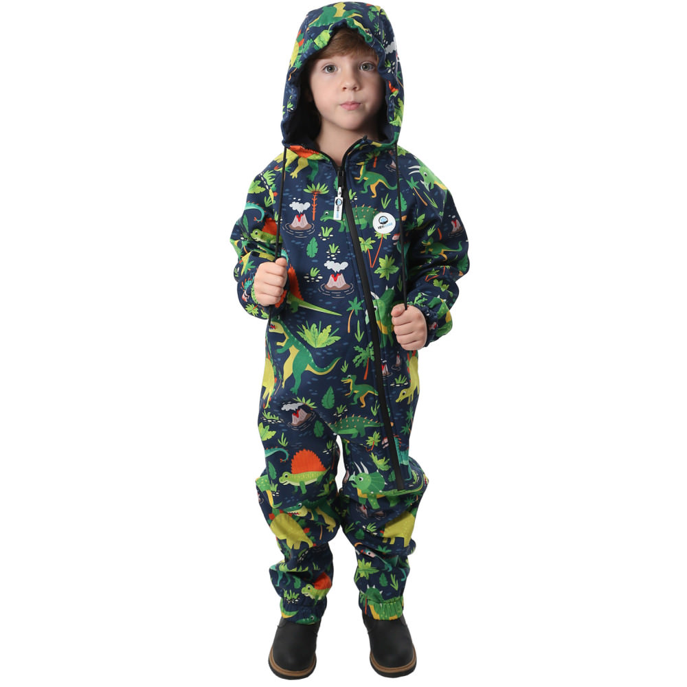 Salopeta impermeabila pentru copii kidscare, cu protectie la vant si apa cu imprimeu dinozauri - marime 92