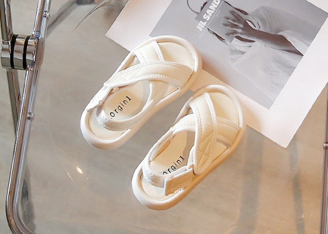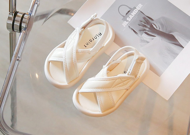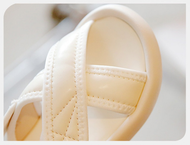 Sandale pentru fetite, din material tip piele ecologica, in forma de X in partea din fata. Se inchid cu barete cu arici ajustabile intr-o parte.