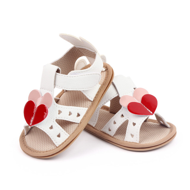 Sandalute albe cu doua inimioare (marime disponibila: 3-6 luni (marimea 18