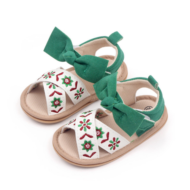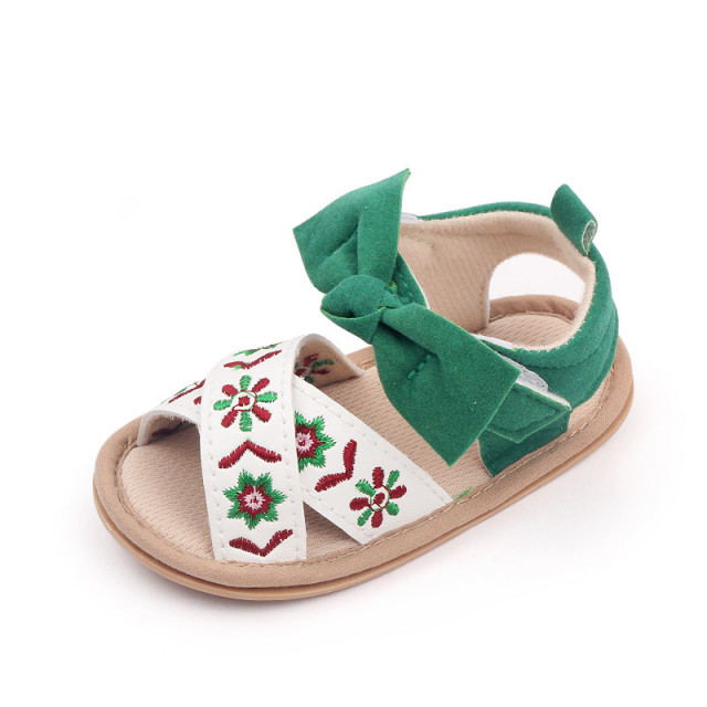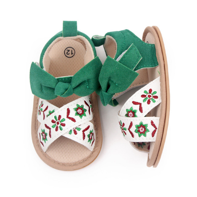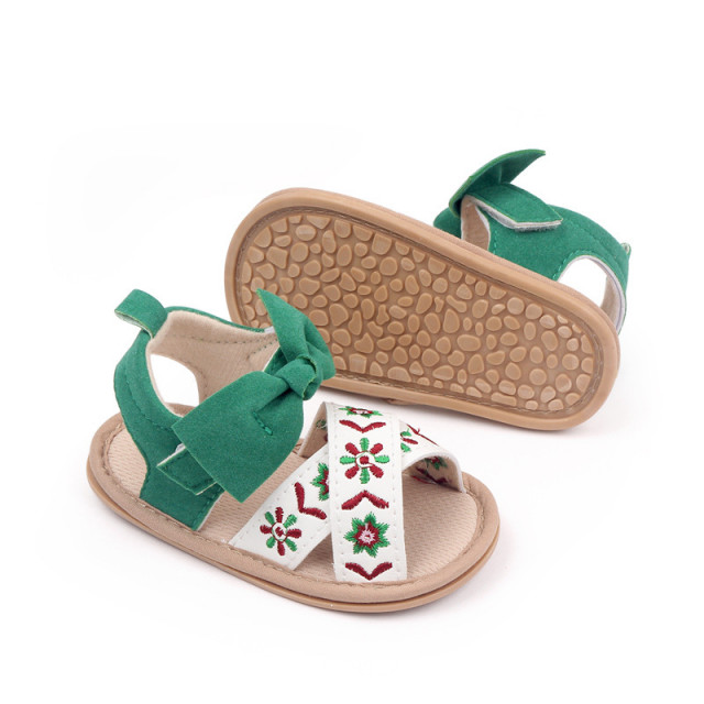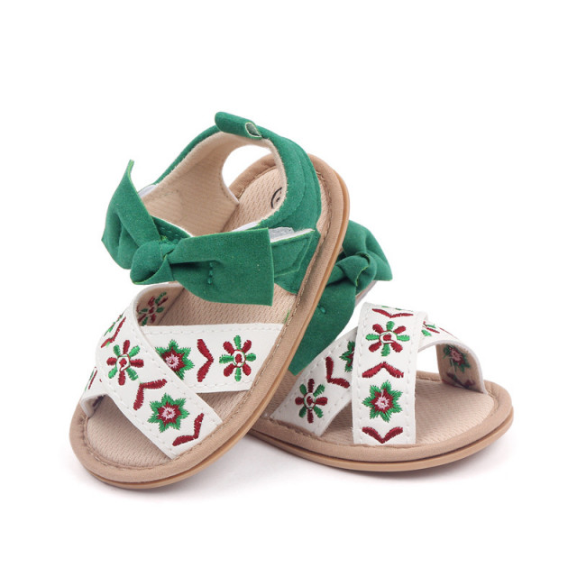 Sandalute albe cu verde - flowers (marime disponibila: 3-6 luni (marimea 18
