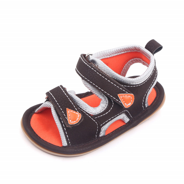Sandale pentru baietei, din material tip piele ecologica, prevazute cu barete ajustabile cu inchidere intr-o parte.