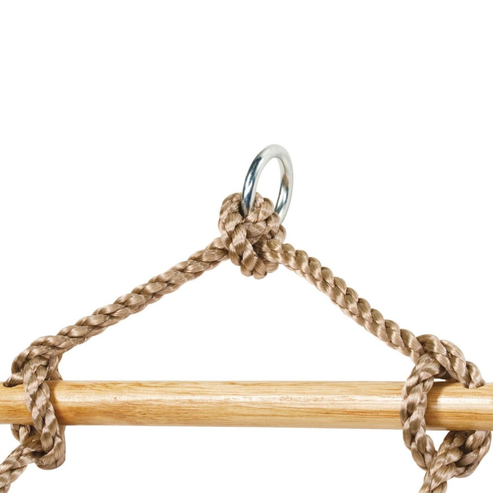 Scara este confectionata din materiale de cea mai inalta calitate, prezinta un singur element de prindele in partea superioara si anume un inel realizat din otel galvanizat, iar in dreptul fiecarei treapte din lemn este un nod care impiedica alunecarea acesteia.