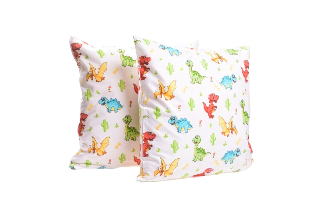 Pernele au husa detasabila, usor de curatat si intretinut. Imprimeul este rezistent la spalari frecvente. Interiorul este din puf hipoalergenic, certificat si sigur pentru copii de toate varstele.