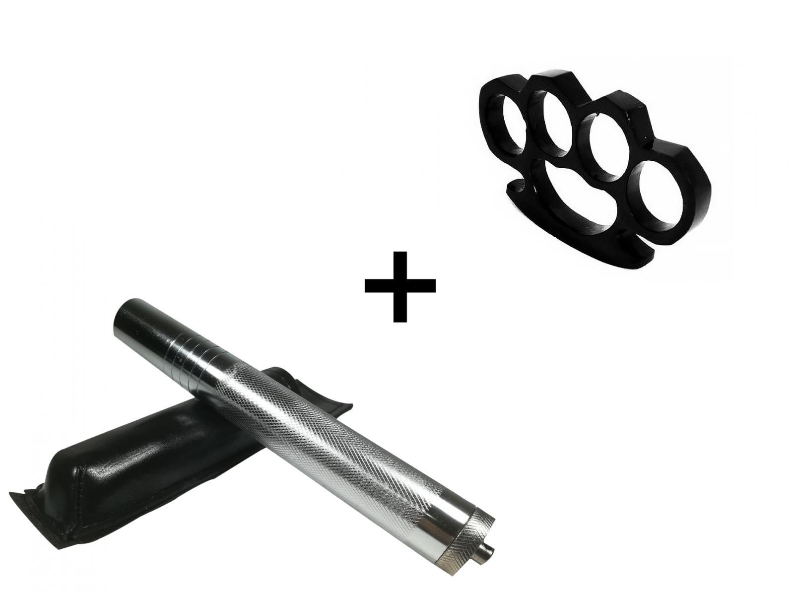 Set baston telescopic din otel, argintiu, 64 cm + box negru 1 cm grosime