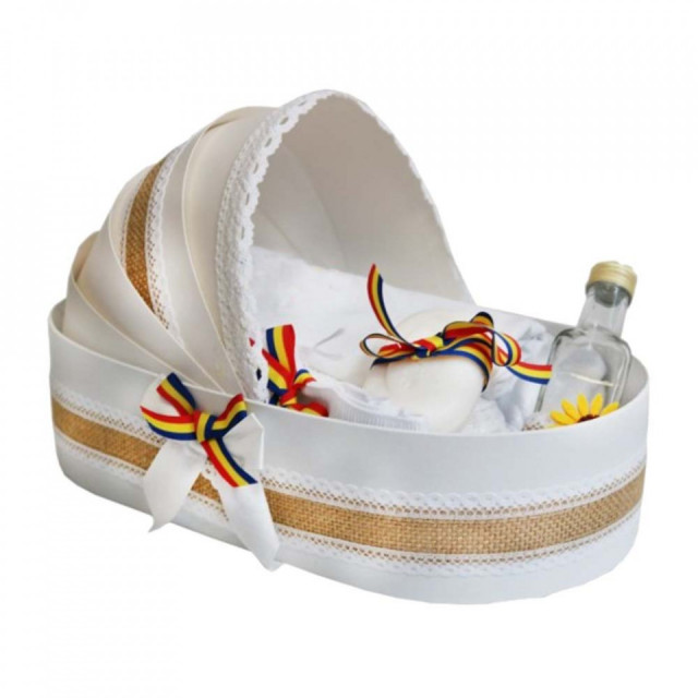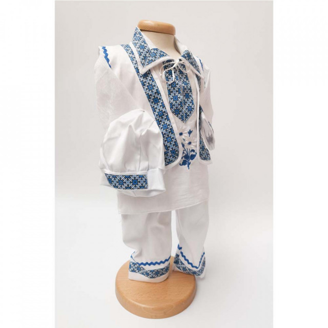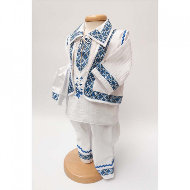 Set special creat pentru ceremonia de botez. Setul este alcatuit din trusou complet ambalat intr-o cutie tip landou decorata tradional, o lumanare asortata si un costum botez traditional baieti alb cu broderie traditionala realizat din materiale de cea mai buna calitate (100% bumbac).