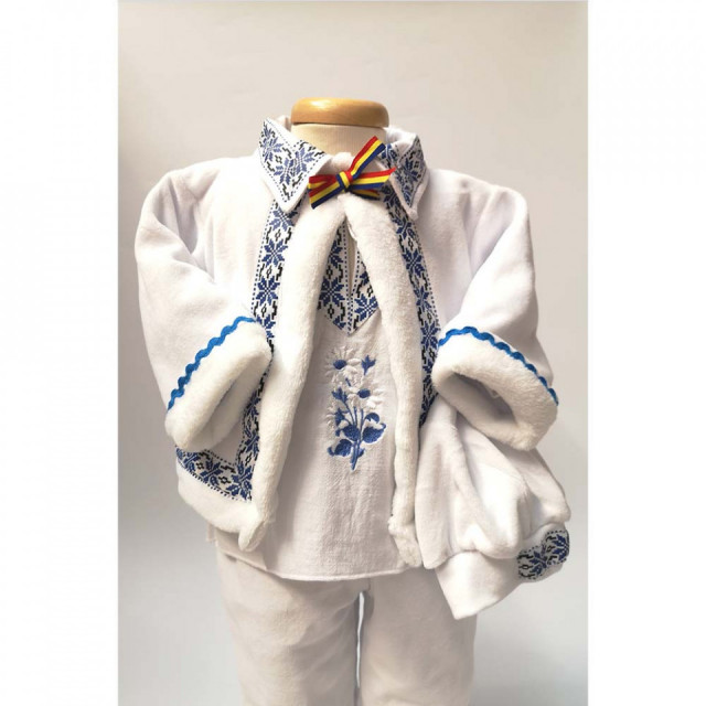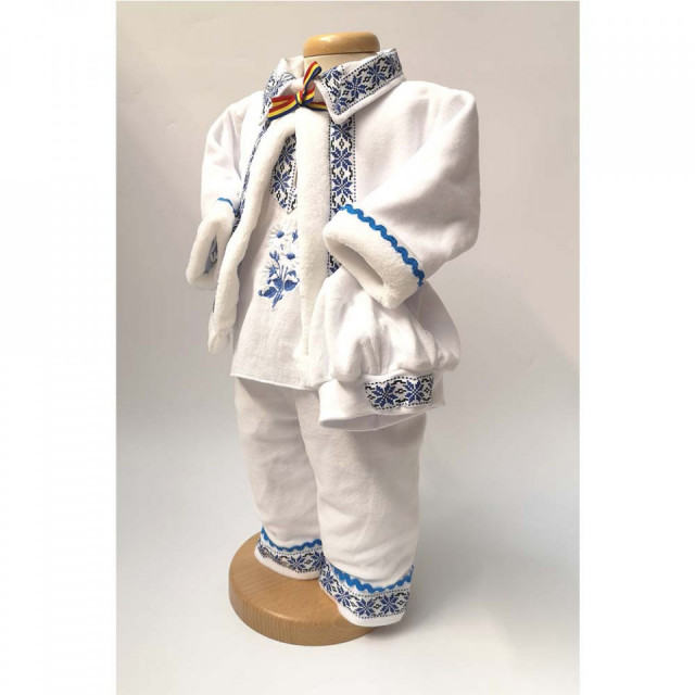 Set special creat pentru ceremonia de botez. Setul este alcatuit din trusou complet ambalat intr-o cutie tip landou decorata tradional, o lumanare asortata si un costum botez traditional baieti alb cu broderie traditionala realizat din materiale de cea mai buna calitate (100% bumbac).