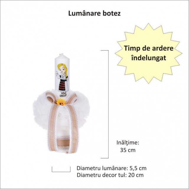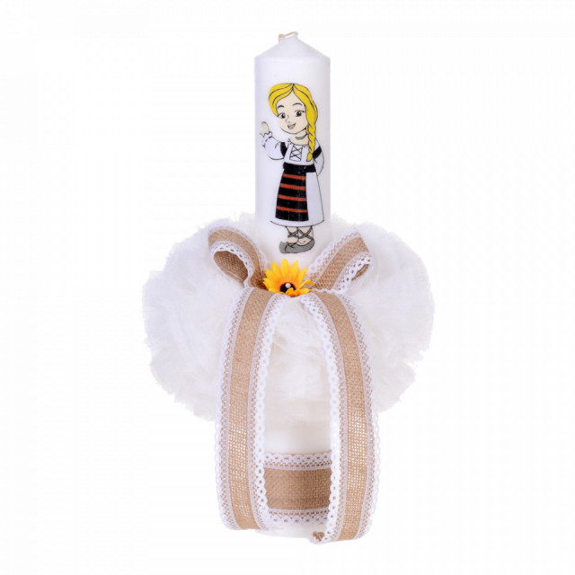 Set botez traditional fetita, trusou botez landou, lumanare si costum traditional, Denikos® 988DESCRIERE