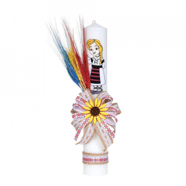 Set costum national fata, trusou botez landou si lumanare, decor popular, Denikos® C9282DESCRIERE