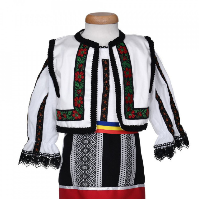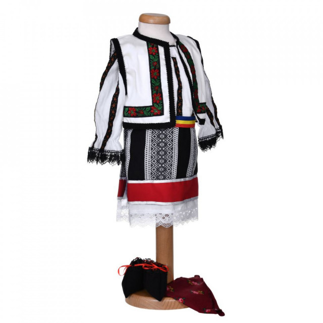 Costumul contine: ie, fusta fota, batic, botosei, vesta, brau tricolor.