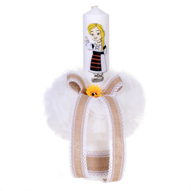 Set costum traditional fata, trusou botez landou si lumanare, decor popular, Denikos® 1054DESCRIERE