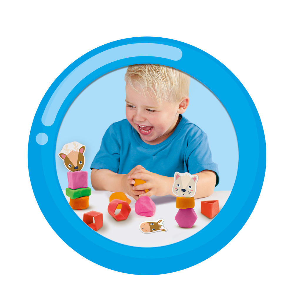 Cu acest set distractiv poti realiza cu usurinta diferite forme colorate si poti construi un turn cool sau chiar animale vesele de la ferma, folosind capetele de animale incluse. Este activitatea perfecta pentru joaca creativa, dezvoltarea imaginatiei si a motricitatii fine. Distractia este garantata!