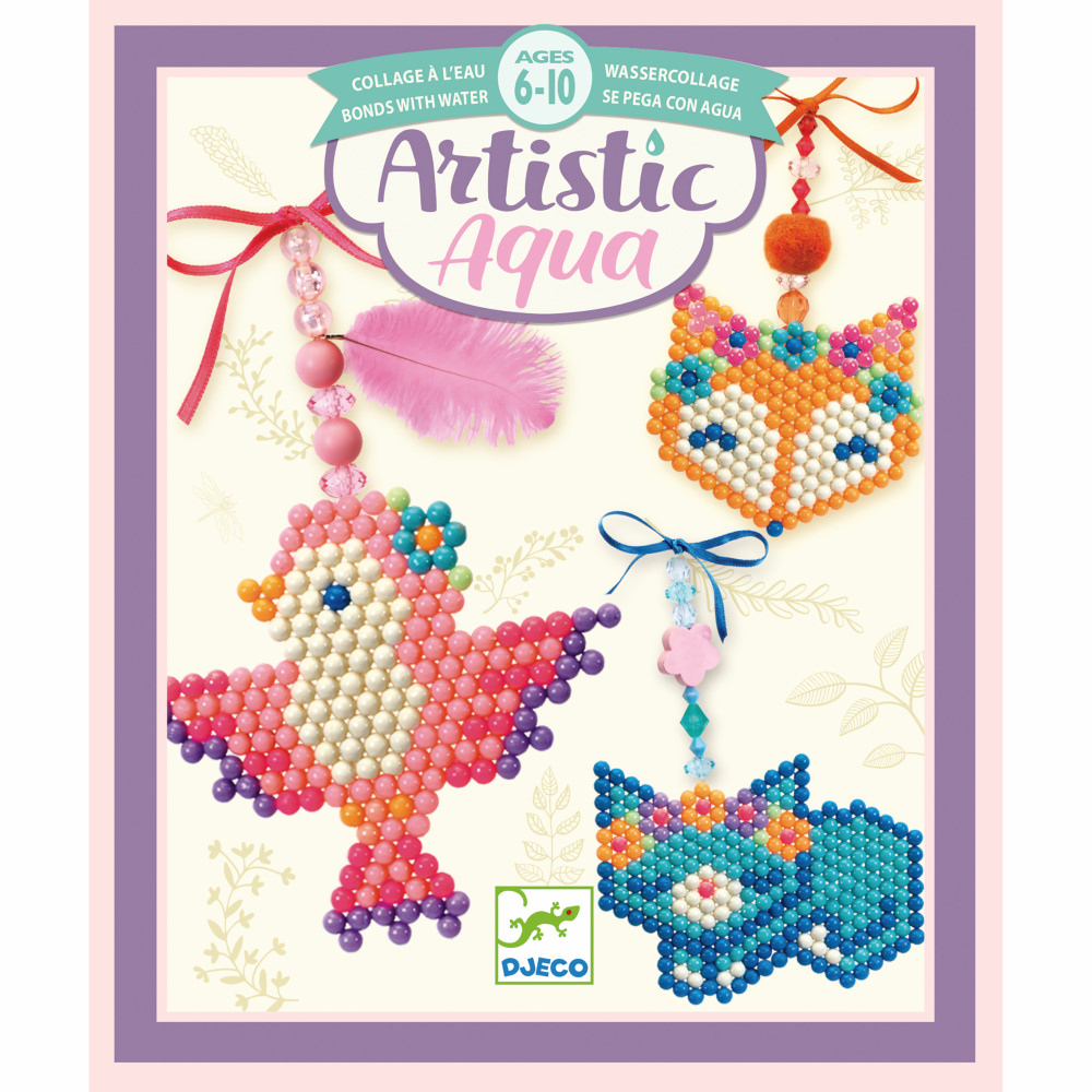 Set creativ Djeco, animale din margele Artistic aqua, tehnica creativa pe baza de apa, cu margele.