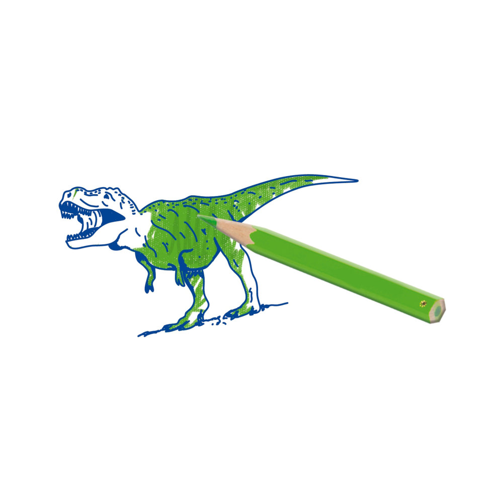 Cu cele 11 stampile diferite si cerneala pe baza de apa, puteti realiza desene frumoase. Coloreaza dinozaurii cu creioanele incluse. S-a uscat cerneala? O poti reactiva cu cateva picaturi de apa.