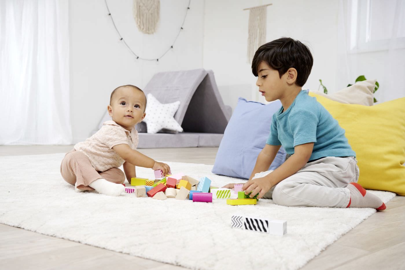 Capacul galetusei are decupaje cu diferite forme de blocuri de constructie, oferind un avantaj suplimentar principiul conectarii, care ii ajuta pe copii sa invete despre forme si culori.