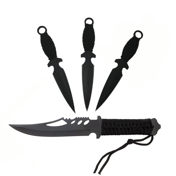 Set cutit de vanatoare extreme battle si trei cutite de aruncat, ninja way, ideallstore®, otel inoxidabil