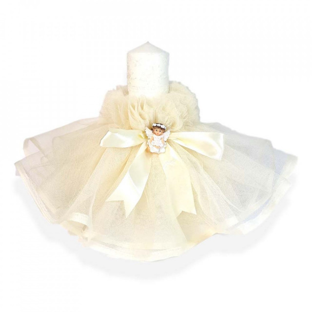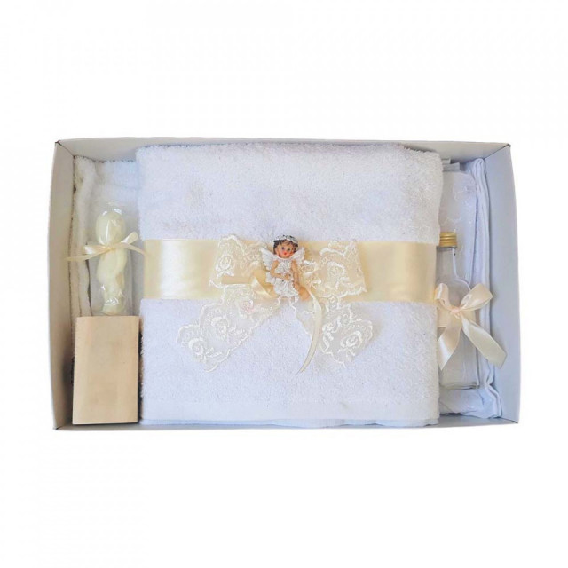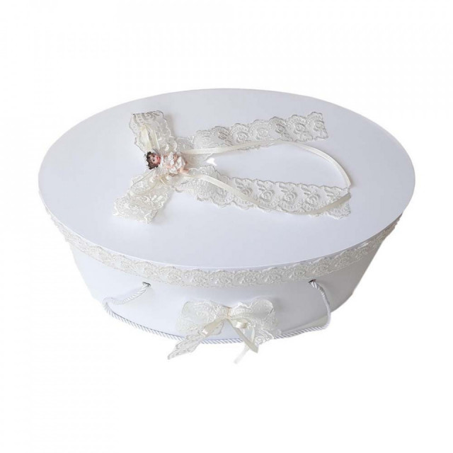 Set dantela trusou botez, cutie trusou si lumanare, Ingeras, decor ivoire, Denikos® 479DESCRIERE