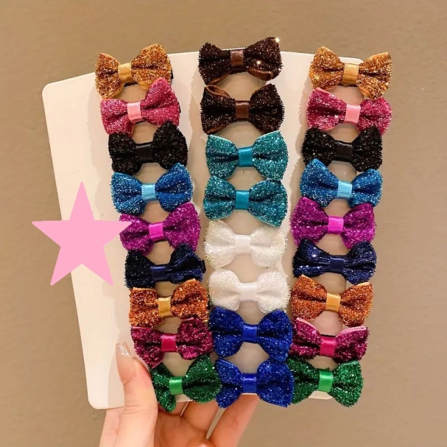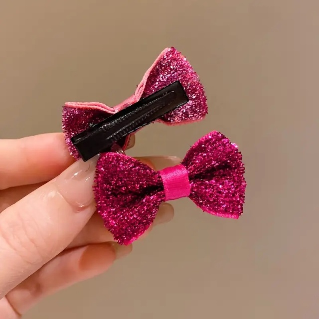 Acest set de 2 clame de par in forma de fundita este alegerea perfecta pentru a adauga un plus de culoare si stralucire coafurilor fetitelor.