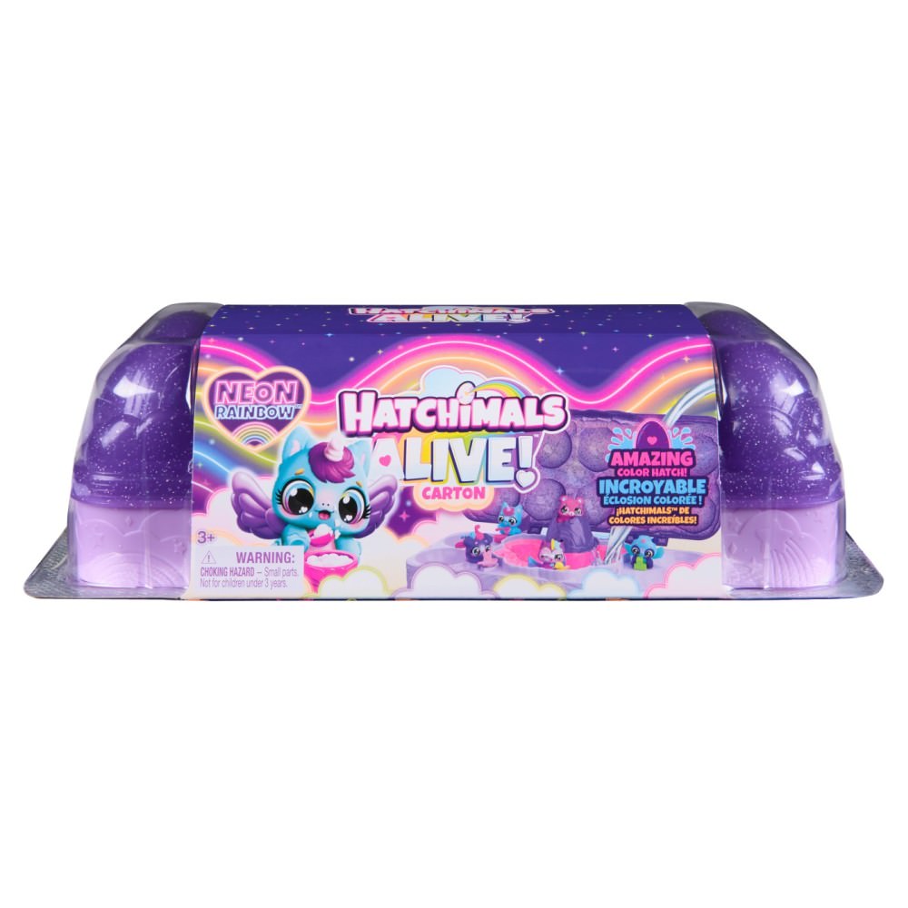 Experimenteaza cum ies jucariile din oua in culori neon cu setul de oua de jucarie Hatchimals Alive Neon Rainbow.