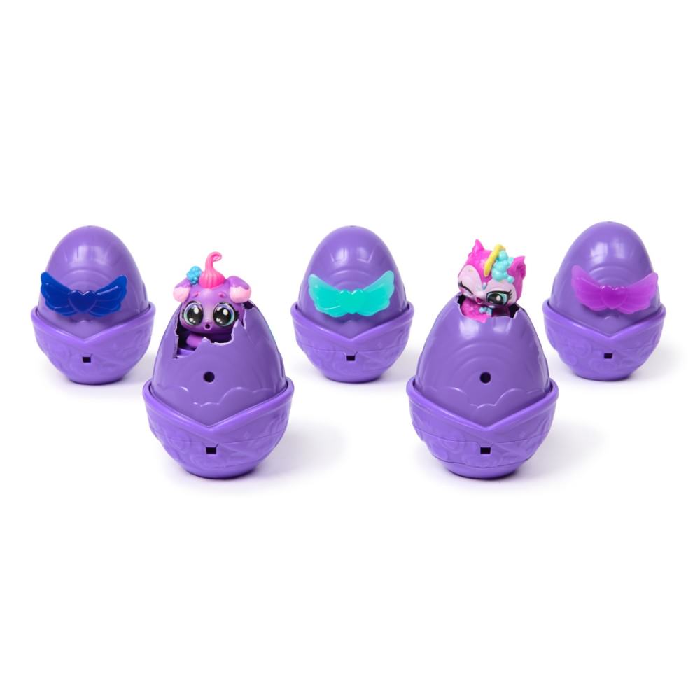 Deschide capacul stralucitor pentru a descoperi o zona de ecloziune incorporata si 5 oua Hatchimals care contin 5 personaje, fiecare inspirat de nuantele Moody Midnight. Inainte de eclozare, alege un loc usor de curatat si protejeaza-ti zona de joaca.