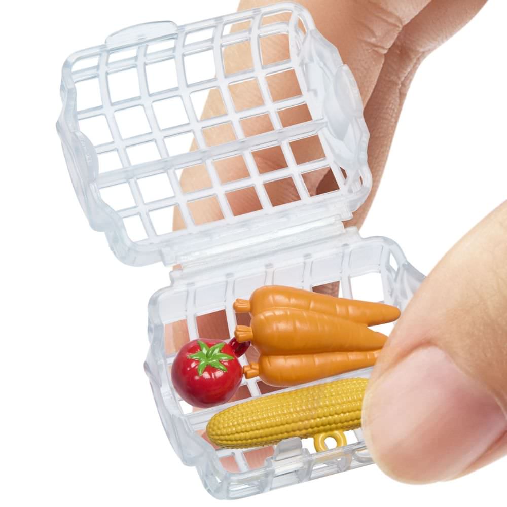 Peste 20 de accesorii includ o piesa de mobilier de bucatarie cu plita, blat, rafturi si un cuptor cu rotisor care invarte cu adevarat un pui.
