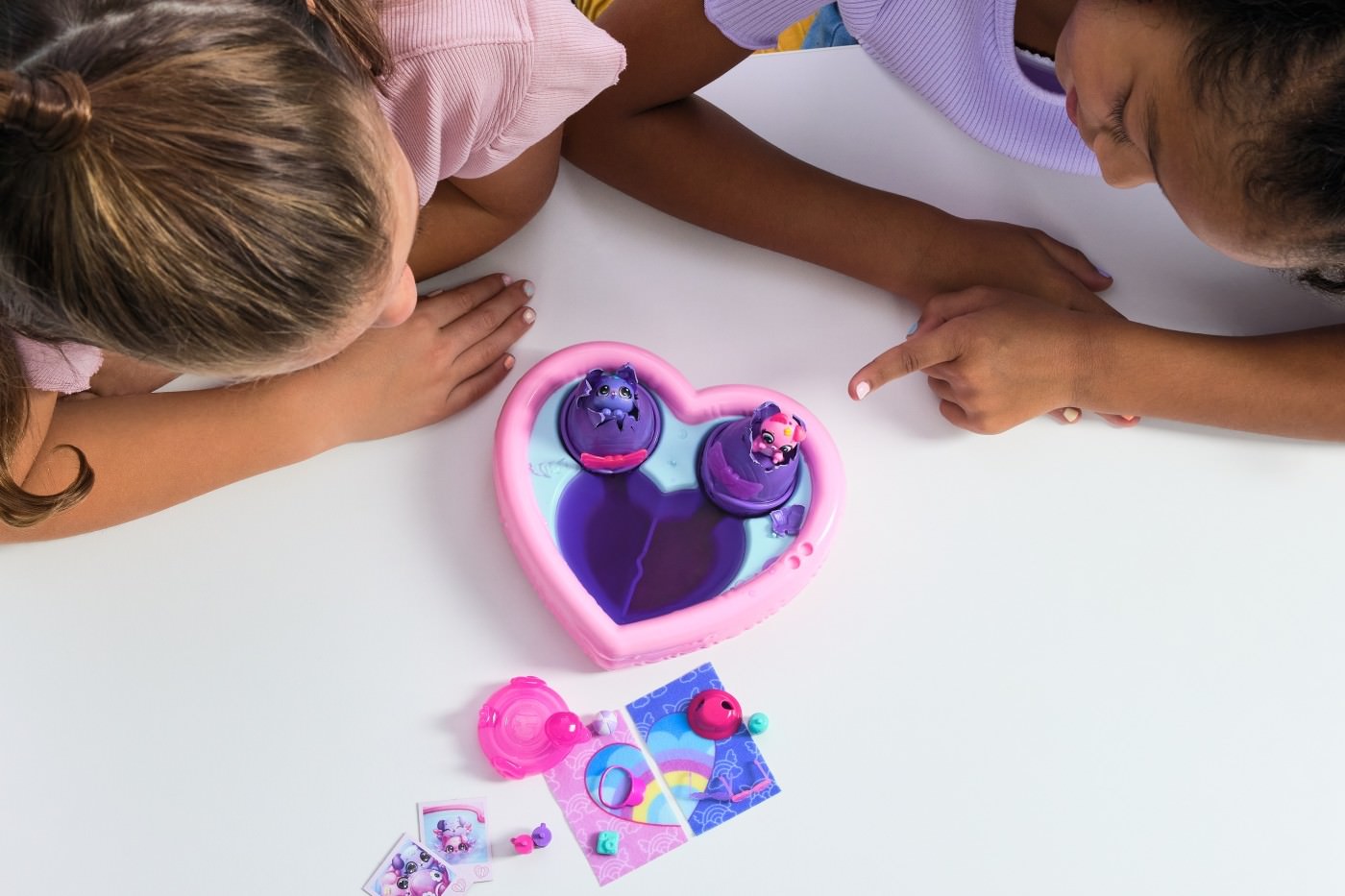 Acest set include 2 Hatchimals in oua, o piscina in forma de inima si 14 accesorii. Inainte de eclozare, alege un loc usor de curatat si protejeaza-ti zona de joaca.