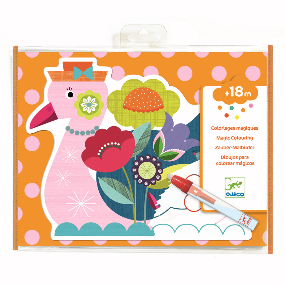 Copiii folosesc stiloul plin cu apă pentru a colora zonele albe și pentru a descoperi ce se ascunde dedesubt. Modelele apar ca prin magie. Odată ce planșele sunt uscate (câteva minute), distracția reîncepe!
