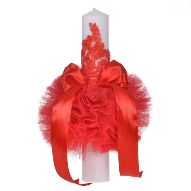 Set elegant trusou botez, cutie trusou si lumanare, decor dantela rosie