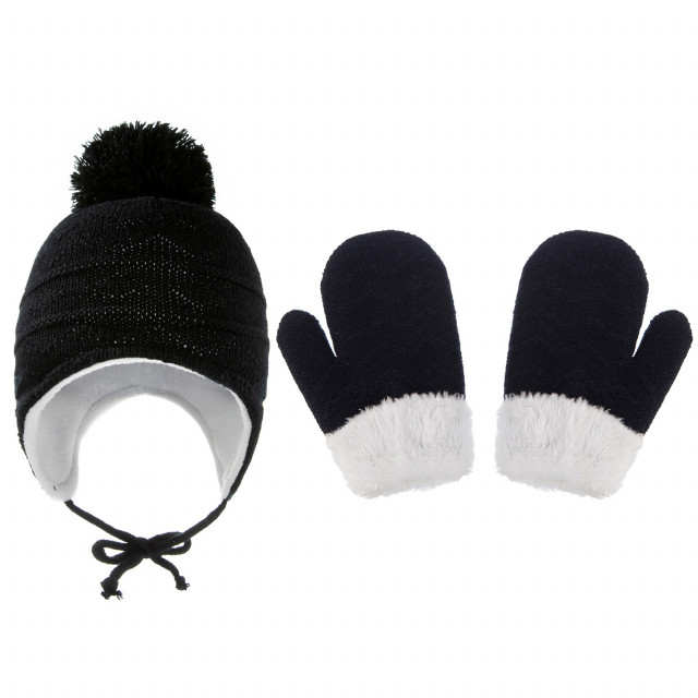 Set negru caciulita si manusi - bella (marime disponibila: 3-6 luni (marimea 18