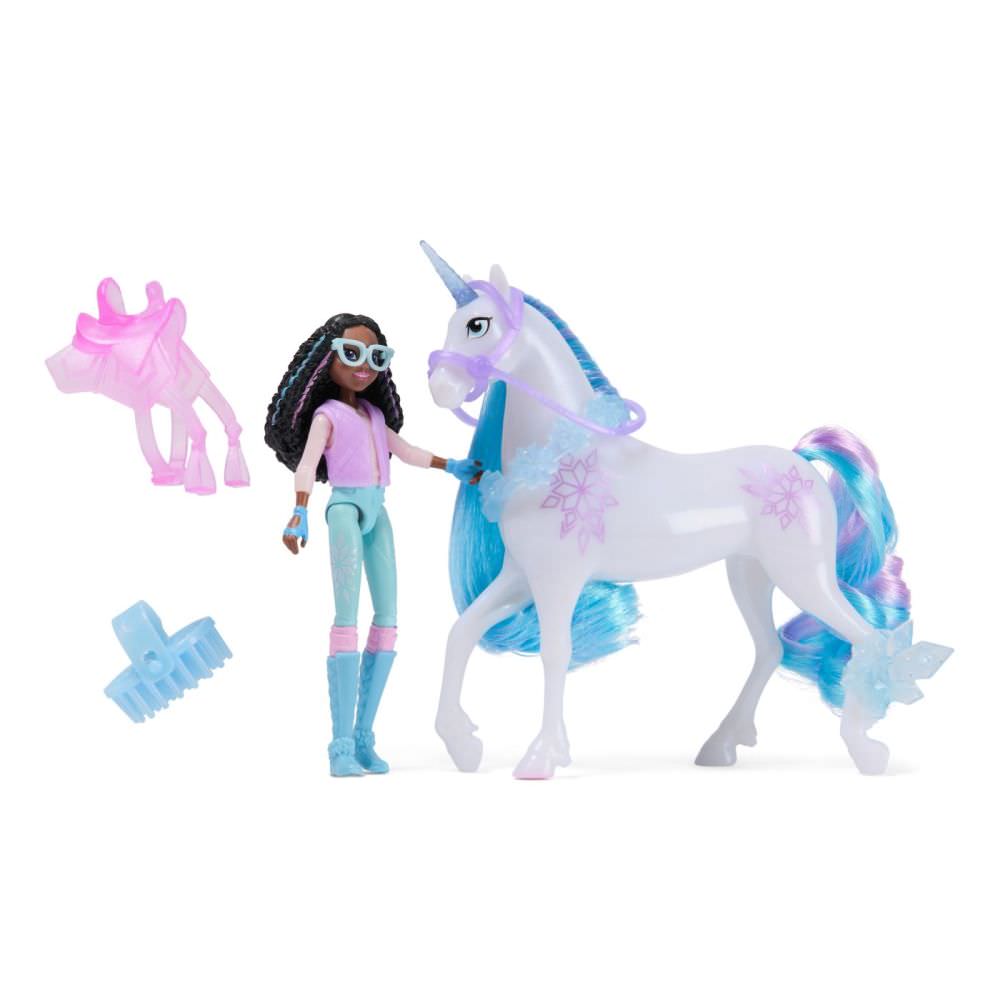 Bazat pe popularul serial NETFLIX si pe cartile pentru copii de succes, acest duo de jucarii Layla si Glacier de la Unicorn Academy va starni aventuri nesfarsite. Traieste legatura magica dintre calaret si unicorn cu Layla si Glacier. Detaliile autentice si cele 7 puncte de articulare o aduc pe Layla la viata.
