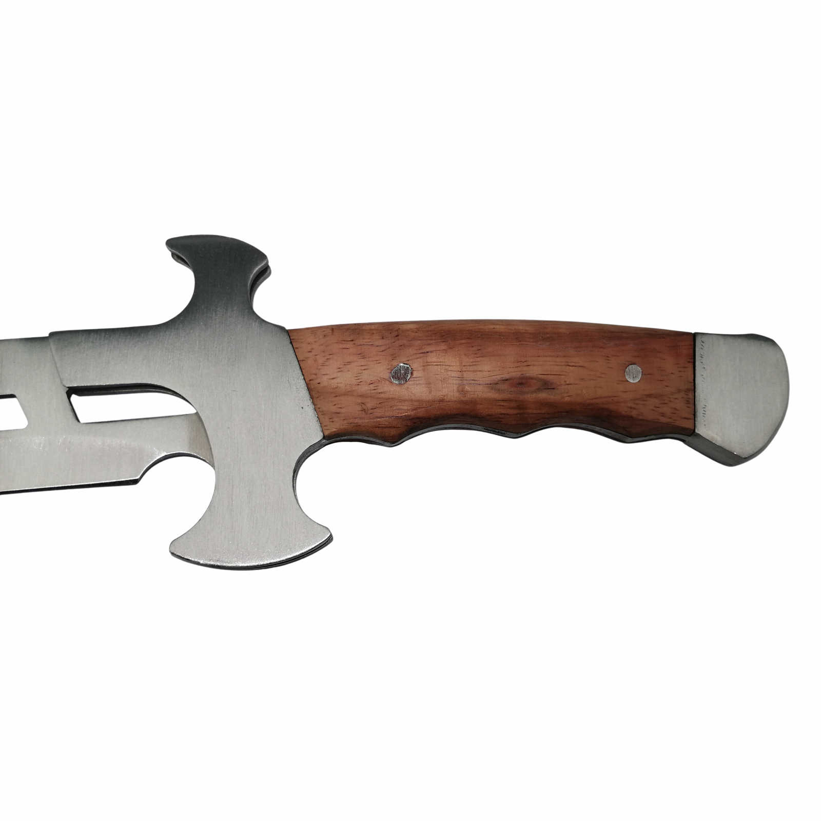 Aceasta sabie nu trebuie sa va lipseasca din colectie. Datorita designului sau ergonomic si a manerului anti-aderent, este un ajutor pentru toate tipurile de utilizari. Lama dura si groasa va garanteaza o durabilitate si o longevitate considerabila a acestei sabii.