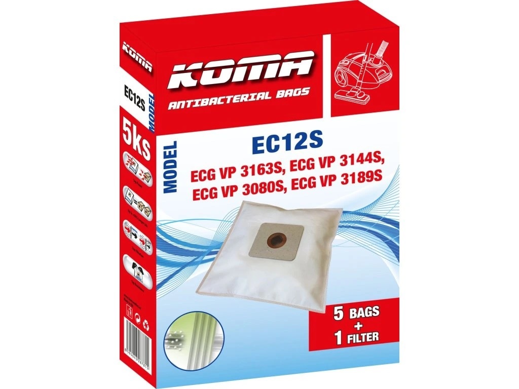 Sacii KOMA EC12S sunt pe deplin compatibili cu aspiratoarele ECG: VP S1010, VP S1050, VP 2080S, VP S3010, VP 3080S, VP 3105S, VP 3120S, VP 3143S, VP 3144S, VP 3149S, VP 3161S, VP 3163S, VP 3189S, VP 4101S, VP 4102S, VP S5020 Continutul pachetului - 5 bucati saci EC22S - 1 buc microfiltru universal (poate fi taiat dupa nevoie) Proprietati - Rezistenta la rupere - Capacitate de filtrare mai buna decat filtrele din hartie - Durata mai lunga de viataDescriere produs