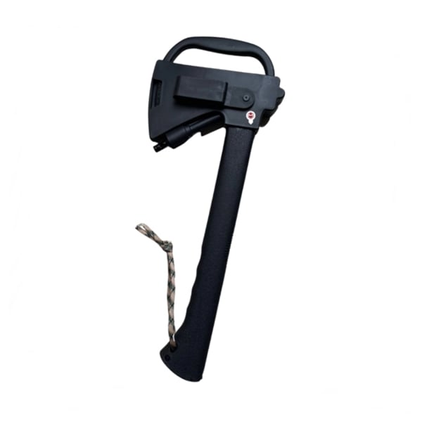 Topor de camping cu echipament de supraviețuire: Fiecare topor de camping include un cuțit în interiorul mânerului toporului, amnar si un fluier atașat la teaca lamei toporului. Un instrument util pe care să-l ai la îndemână, fie că faci drumeții, camping sau vânătoare.Toporul și cuțitul de supraviețuire sunt construite din oțel pentru a rezista utilizării continue în exterior.