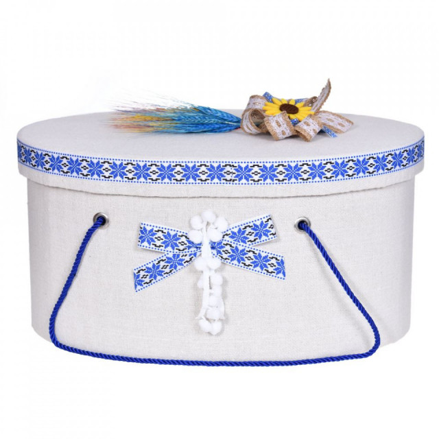 Cutia are forma ovala si este realizata din carton gros, rezistent. Poate fi utilizata dupa botez ca si cutie de depozitatre a jucariilor sau a amintirilor dragi.