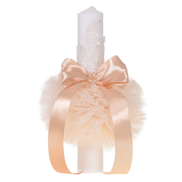 Set trusou botez, cutie trusou si lumanare, decor elegant dantela Crem, Denikos® 923DESCRIERE