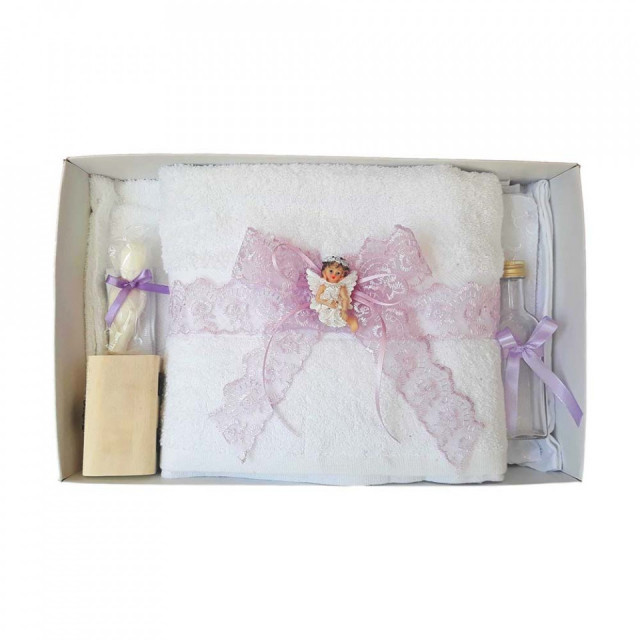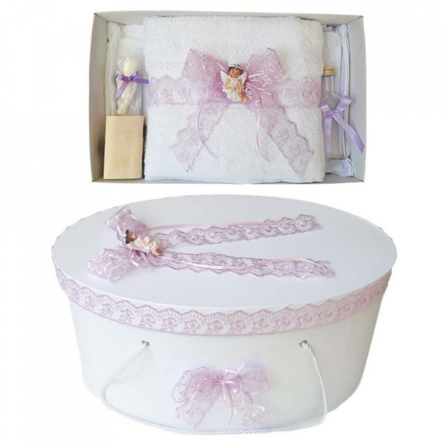 Set trusou botez si cutie trusou, Ingeras, dantela lila, Denikos® 450DESCRIERE