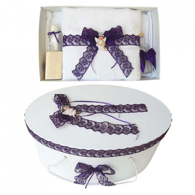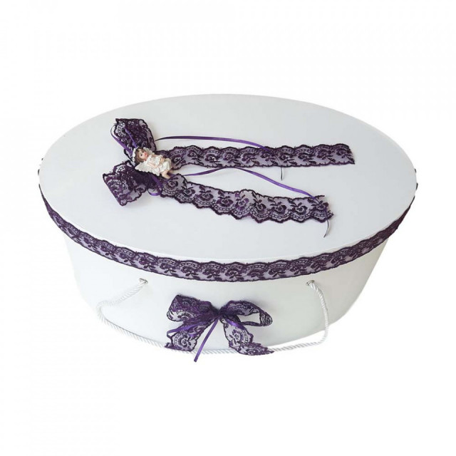 Set trusou botez si cutie trusou, Ingeras, dantela mov, Denikos® 451DESCRIERE