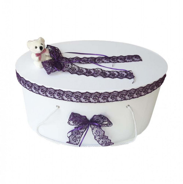 Set trusou botez si cutie trusou, ursulet, dantela mov, denikos® 463