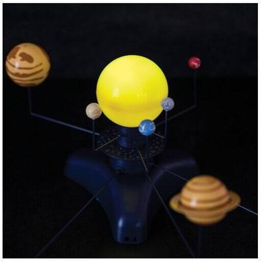 Sistemul solar motorizat il va ajuta pe copilul tau sa inteleaga miscarea planetelor in sistemul solar, dar si rolul atat de important al soarelui. Soarele straluceste pentru cele 8 planete care orbiteaza in jurul sau. Copiii isi vor forma o imagine mai corecta asupra sistemului nostru solar cu ajutorul acestui model motorizat care se roteste. Apoi transforma soarele intr-un planetariu pentru a vedea indeaproape stelele. Imaginea sistemului solar se proiecteaza pe tavan in orice incapere intunecata.