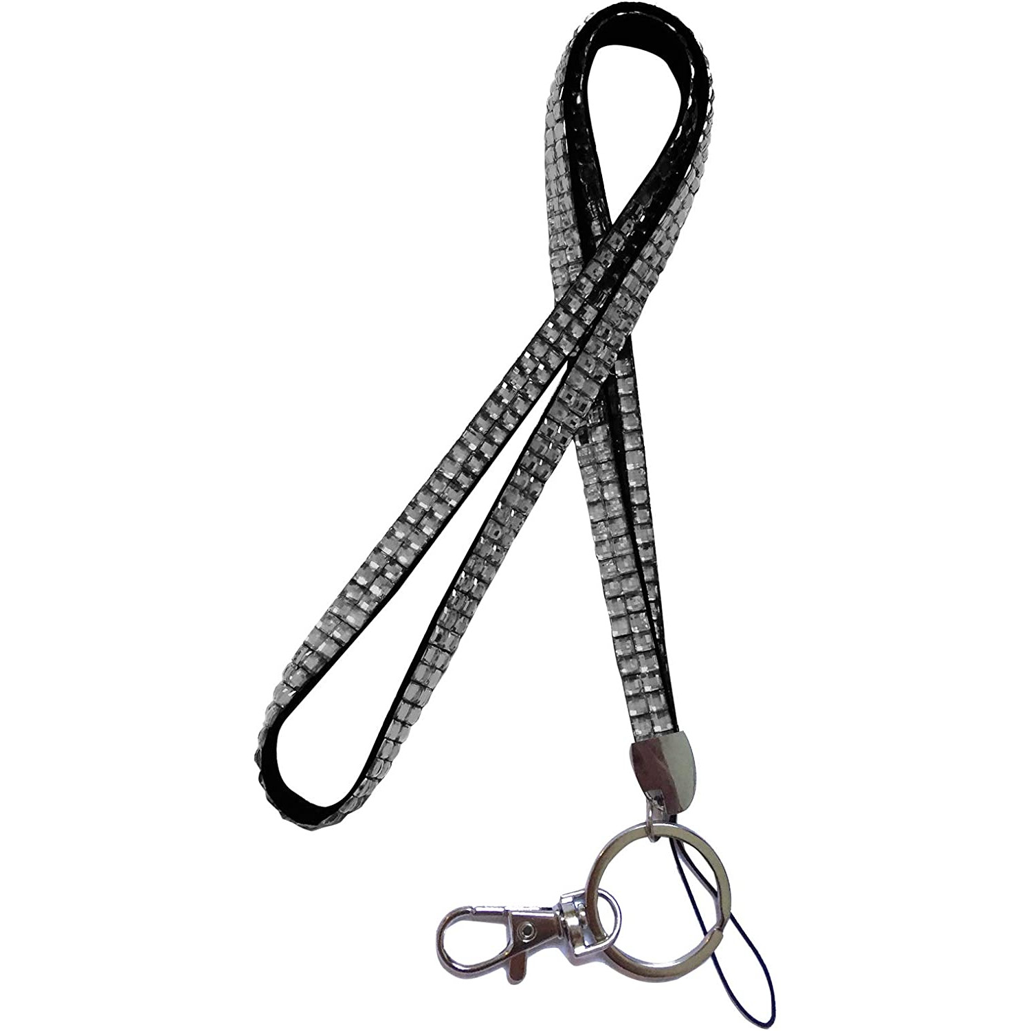 Snur ecuson,legitimatie sau chei, decorat cu pietricele, carabina metalica, 54 cm, smokeygrey, Vivo