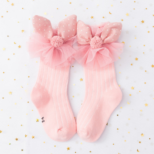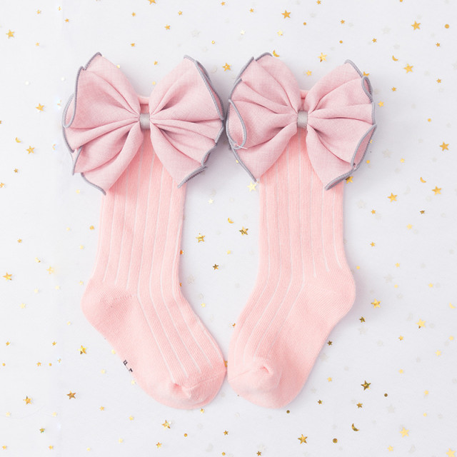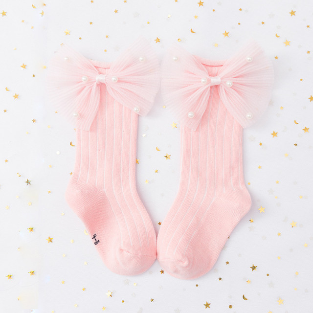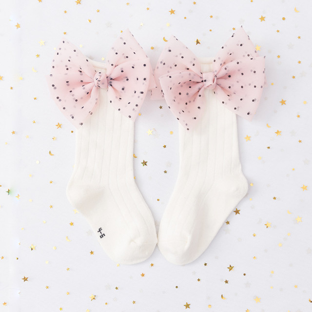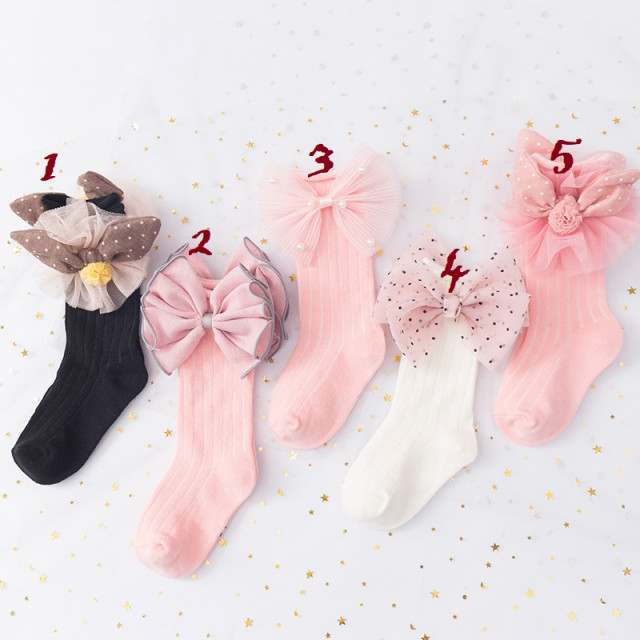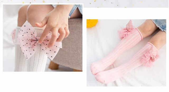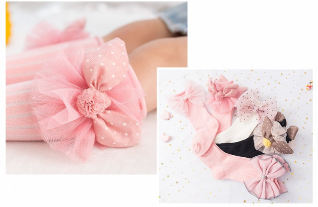 Sosete trei sferturi pentru fetite, cu model din tesatura si cu fundite, diferite modele, aplicata intr-o parte. Ofera eleganta tinutelor micutelor domnisoare.