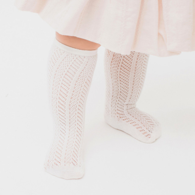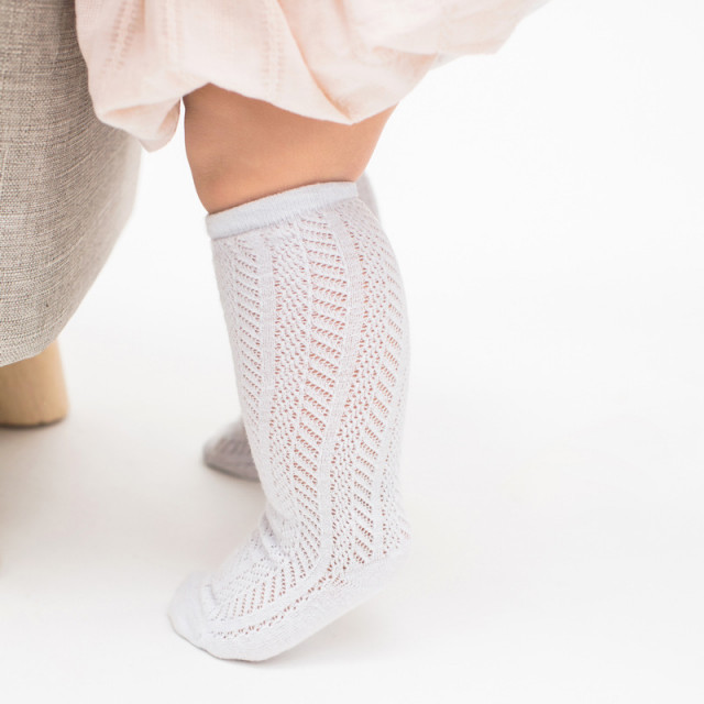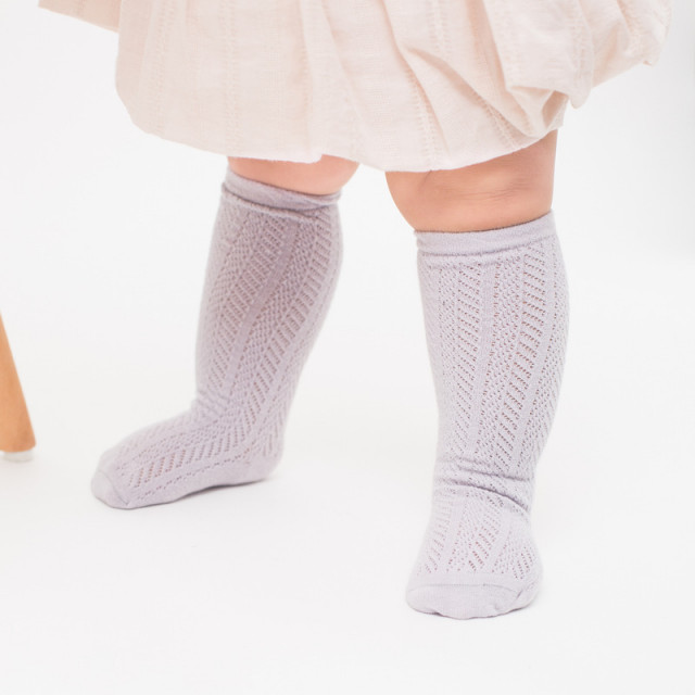 Sosete trei sferturi pentru fetite, cu model din tesatura. Ofera eleganta tinutelor micutelor domnisoare.