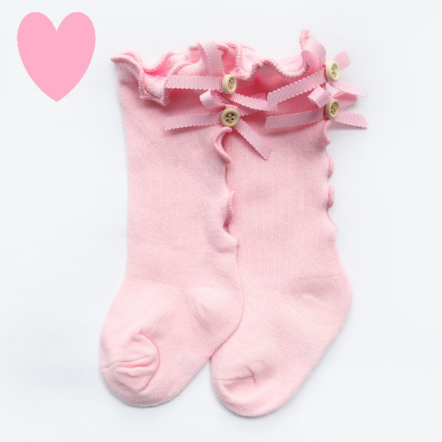 Sosete trei sferturi pentru fetite, cu nasturei si fundite aplicate la spate. Ofera eleganta tinutelor micutelor domnisoare.
