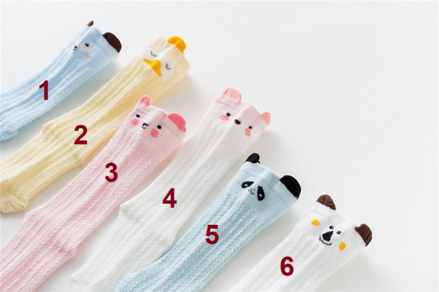 Sosete trei sferturi pentru fetite, cu model din tesatura, in forma de cap de animalut in partea cu elastic.