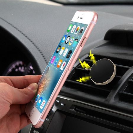 Instalarea este simpla. Suportul magnetic se plaseaza intr-una dintre fantele de ventilatie a masinii, iar banda metalica se pe telefon.