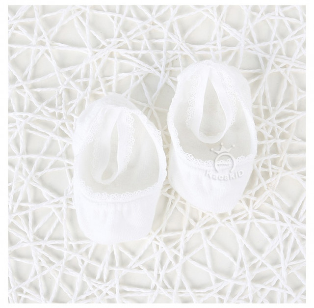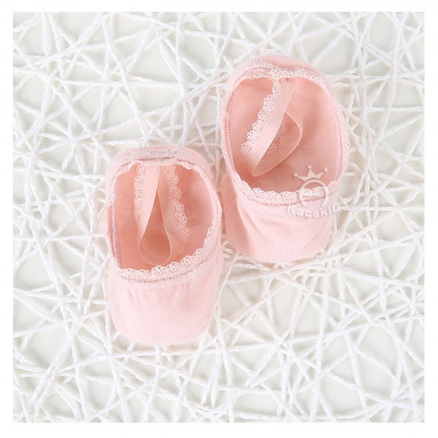 Talpici pentru fetite, cu margine dantelata si cu bareta din elastic moale pentru fixarea pe piciorus.