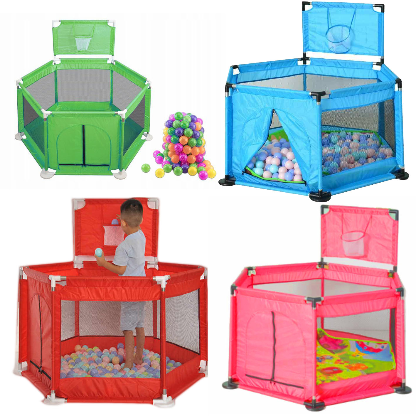 Tarc copii cu cos de baschet si 50 bile colorate, Loc de joaca cu usa laterala, Metal, Ocupa putin spatiu si este usor de montat, Protectii de plastic, Interior - Exterior Pentru ca siguranta copilului tau este cea mai importanta iti aducem in ajutor minunatul tarc de joaca metalic cu cos de baschet si 50 bile incluse. Noul model de tarc are un cos de baschet la care cel mic poate exersa aruncaturi cu mingiutele si este un accesoriu esential pentru orice copil acasa! Poate fi montat usor si rapid in interiorul apartamentului, dar si in gradina. In cateva minute, ii poti oferi copilului tau un super loc de joaca unde el sau ea sa fie in siguranta si confortabil. Produsul are, de asemenea, o deschidere mica care poate fi blocata, unde bebelusul dvs. se poate ascunde daca il lasati. Specicifactii si caracteristici: - Varsta: +3 luni - Este sigur si usor de montat; - Este prevazut cu o iesire cu fermoar; - Cos de baschet cu panou detasabil, usor de montat si de demontat; - Parintele poate supraveghea de la distanta datorita zonelor cu plasa; - Poate fi luat in deplasari; - Ocupa putin spatiu; - Tarcul poate fi folosit si ca spatiu de depozitare; - Se poate folosi atat in casa cat si in exterior, in curte; - Cadrul este metalic, forma hexagonala - Usor de intretinut, se curata cu usurinta; - Pentru a evita accidentarile, la colturi are protectii de plastic; - Material textil rezistent, culori vii; - 50 bile colorate; - Zona perforata pentru ventilare si o buna supraveghere a copilului; - 6 picioare; - Inaltime: 65 cm; - Adancime: 128 cm; - Latime: 113 cm; - Greutate: 2 kg; - Greutate maxima suportata: 20 kg