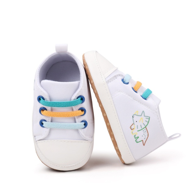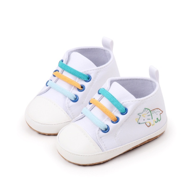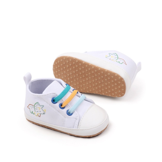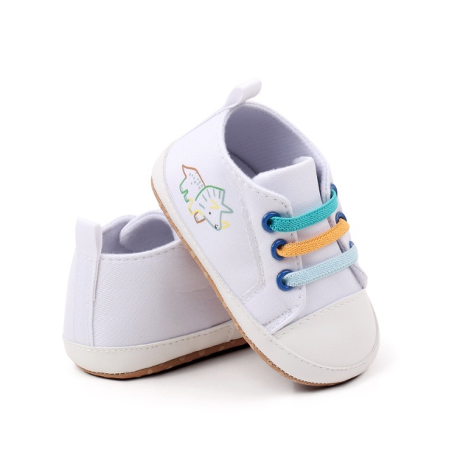 Tenisi albi cu sireturi colorate - dino (marime disponibila: 6-9 luni (marimea
