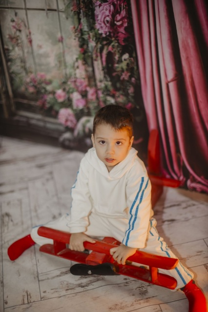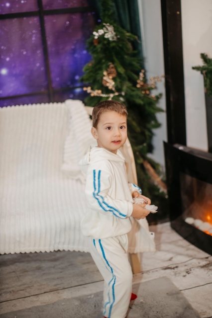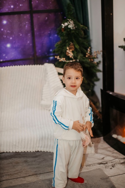Acest trening pentru copii este alegerea perfectă pentru zilele active sau relaxante. Setul include o bluză cu glugă și pantaloni cu talie elastică, fiind confecționat dintr-un material moale, plăcut la atingere și potrivit pentru pielea sensibilă. Designul modern este completat de dungi albastre pe laterale, oferind un look casual și plin de stil.