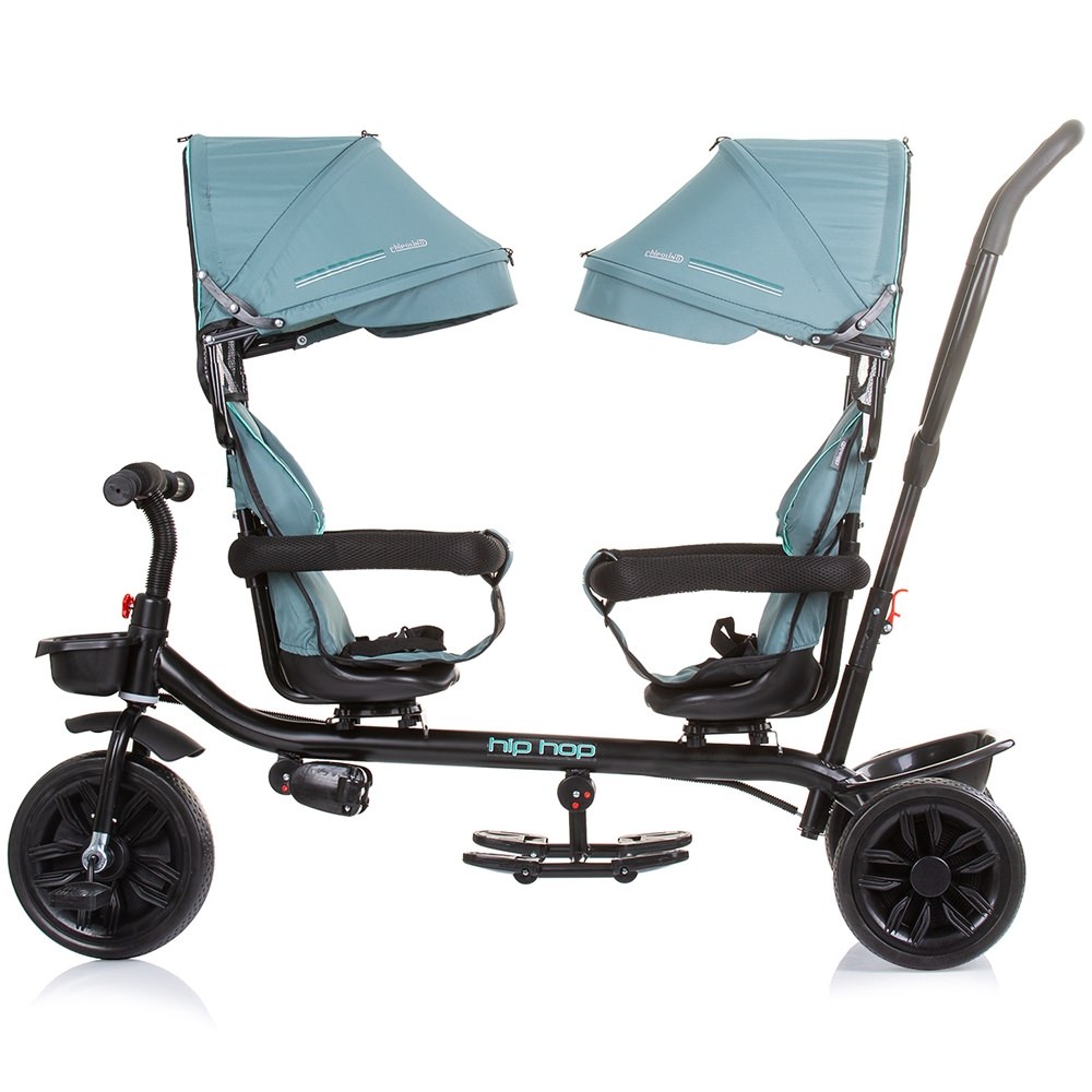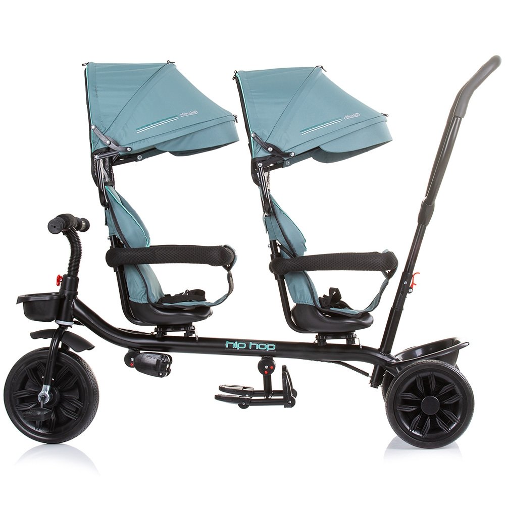 Potrivita pentru doi copii cu varsta peste 1,5 ani, cu o greutate totala de pana la 40 kgPoate fi pusa in miscare de catre copil cu ajutorul pedalelor sau poate fi impins de catre parinte